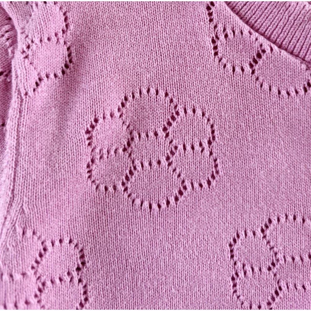 Ez a bájos C&A rózsaszín kardigán tökéletes választás a 10 éves kislányok ruhatárába. A finomkötött pamut anyag kényelmes viseletet biztosít, miközben a lyukmintás, virágos minta játékos, vidám hangulatot kölcsönöz a darabnak.