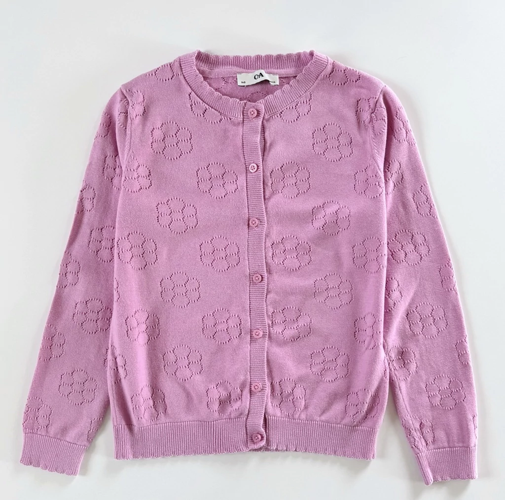 140-es rózsaszín virágos kötött lány kardigán – C&A, 10 év