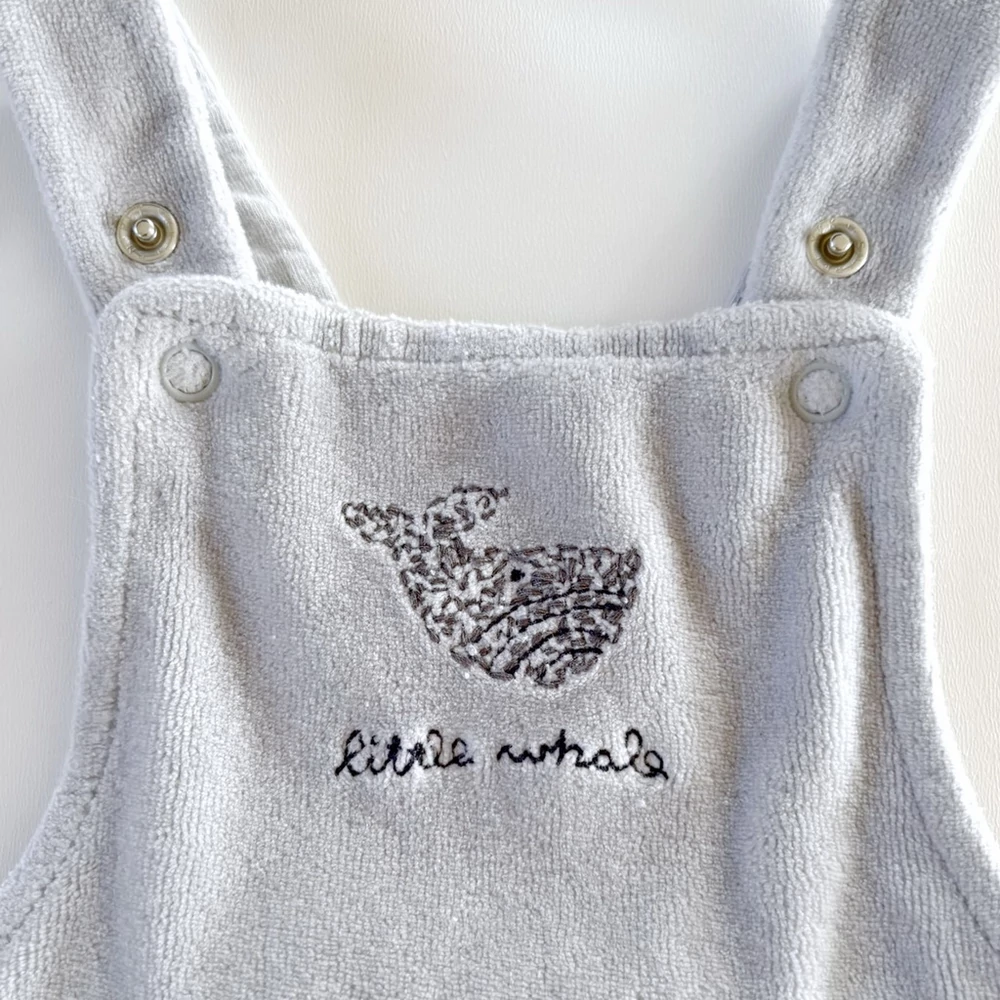 Ez a bájos, Next márkájú plüss kantáros nadrág ideális választás a legkisebbek számára. Világos szürke árnyalata, valamint az elején elhelyezett aranyos hímzett bálna minta különlegessé és játékossá teszi.