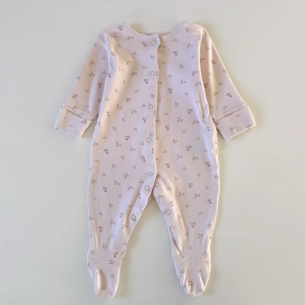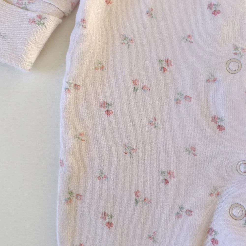 62-es Next virágmintás pamut rugdalózó visszahajtható ujjal – 0–3 hónapos