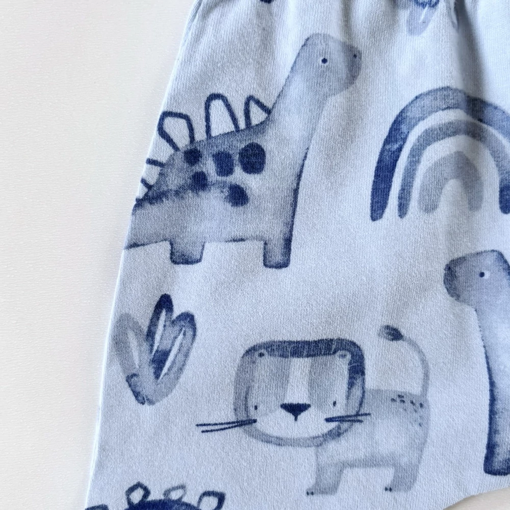 Ez a Next márkájú kisfiú nadrág vidám dinoszaurusz mintájával különleges darabja lehet a baba ruhatárának. A világoskék alapon kék dinoszauruszok és állatfigurák modern, játékos hangulatot adnak.