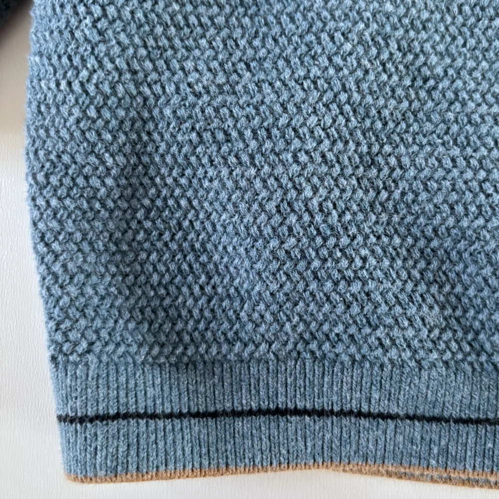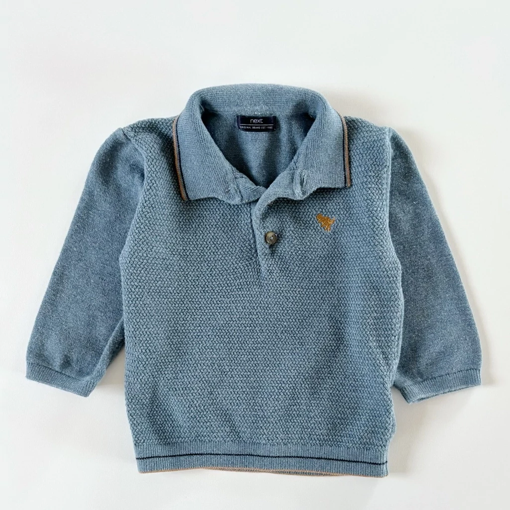 74-es Next kék galléros pamut kötött pulóver kisfiúnak – 6–9 hó