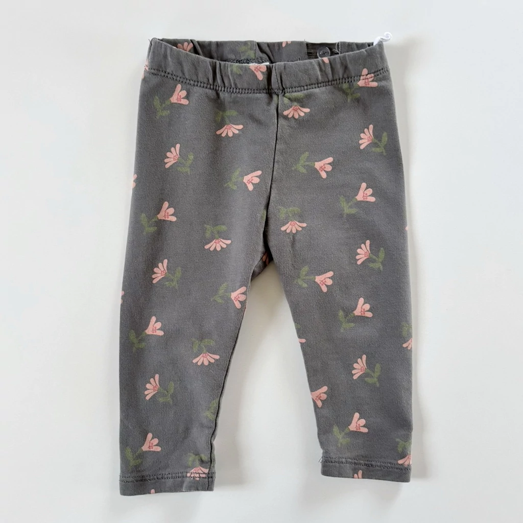 74-es szürke virágmintás kislány leggings – H&M, 6-9 hó