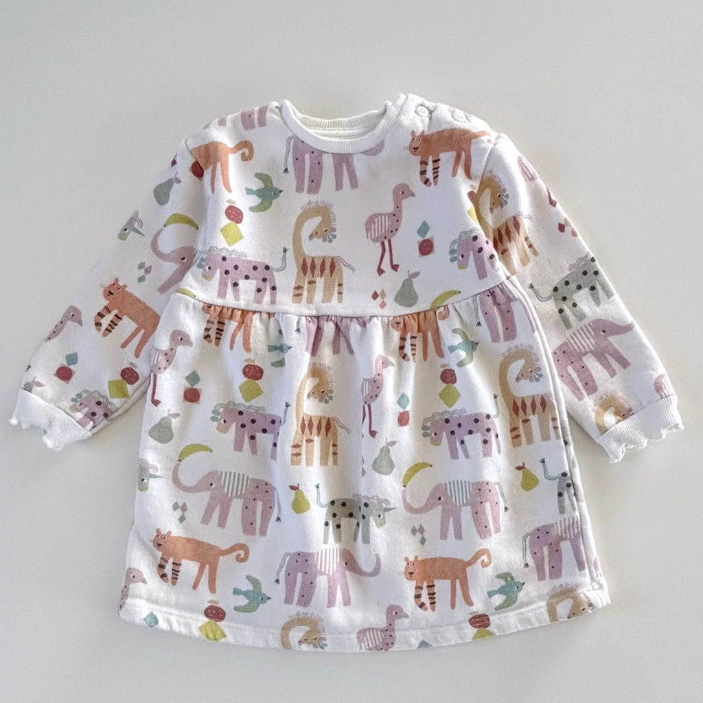 80-as George állatos hosszú ujjú pamut pulóver ruha kislánynak – 9–12 hónapos