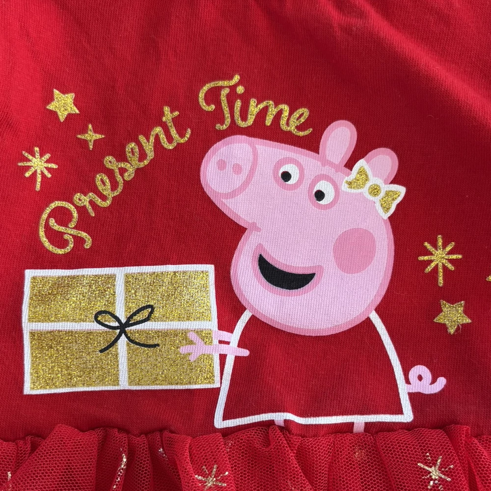 80-as piros Peppa malac karácsonyi tüllszoknyás body fodros ujjakkal – 9-12 hónap