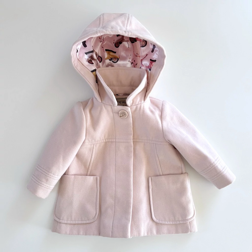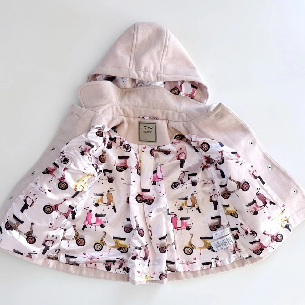 86-os Next rózsaszín kapucnis Vespa mintás szövetkabát kislánynak – 12-18 hónap