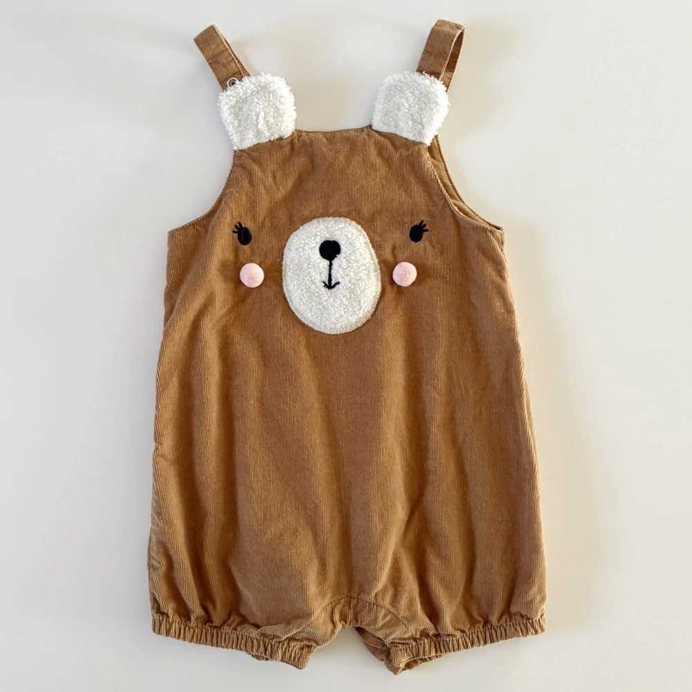 Ez a bájos macis kord overall kislánynak igazi őszi kedvenc! A George márka darabja, puha kordbársony anyagból készült, amely meleg és kényelmes viselet hűvösebb napokon is. A mellrészen hímzett maciarc és pihe-puha fülecskék díszítik, így különösen aranyos és egyedi megjelenést ad a ruhának.